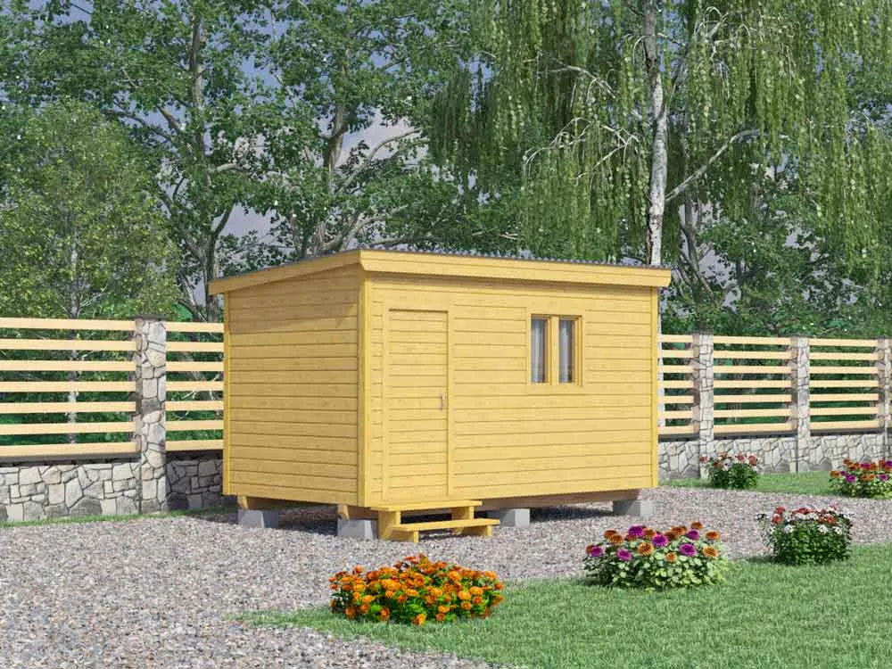 ![]() | Бытовка для дачи в стиле хай-тек с цветным профлистом 3х2.4 | 3х2,4 | 7,2 | ![]() | ДВП-Оргалит: 124 000 | Вагонка дерев.: 132 000 | OSB: 130 500 |